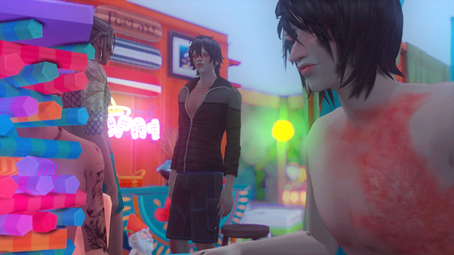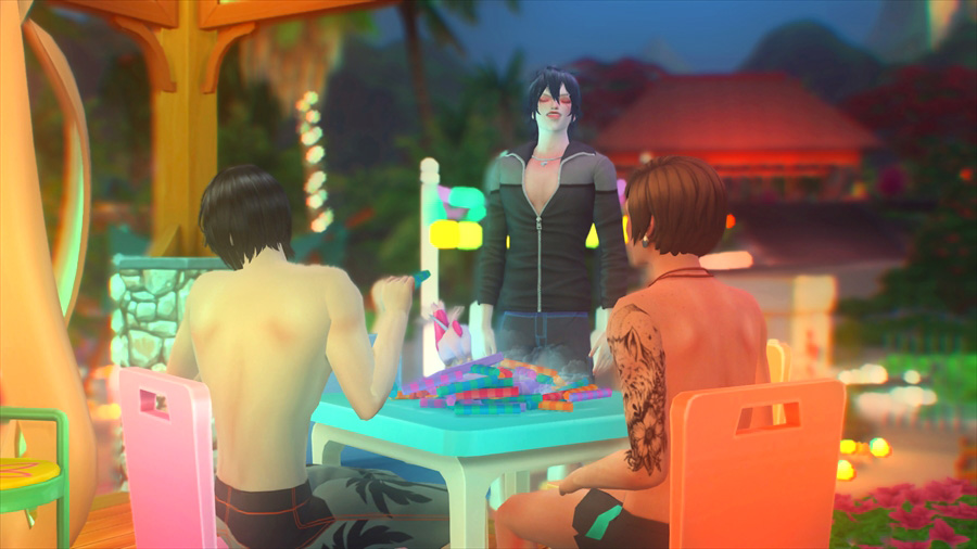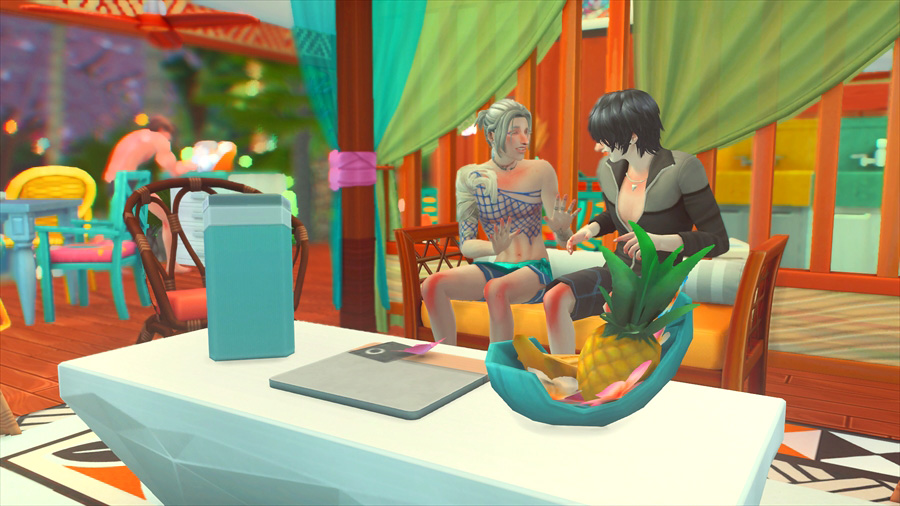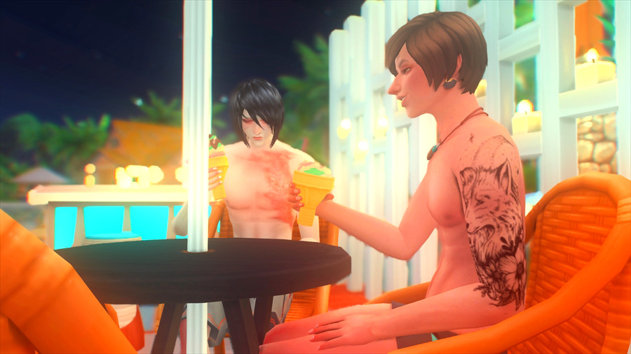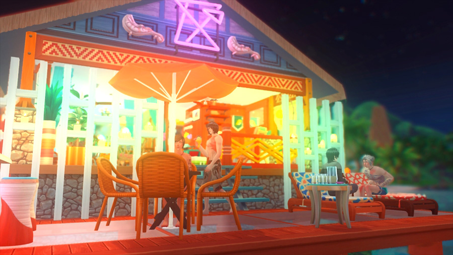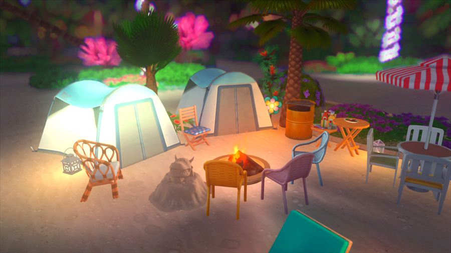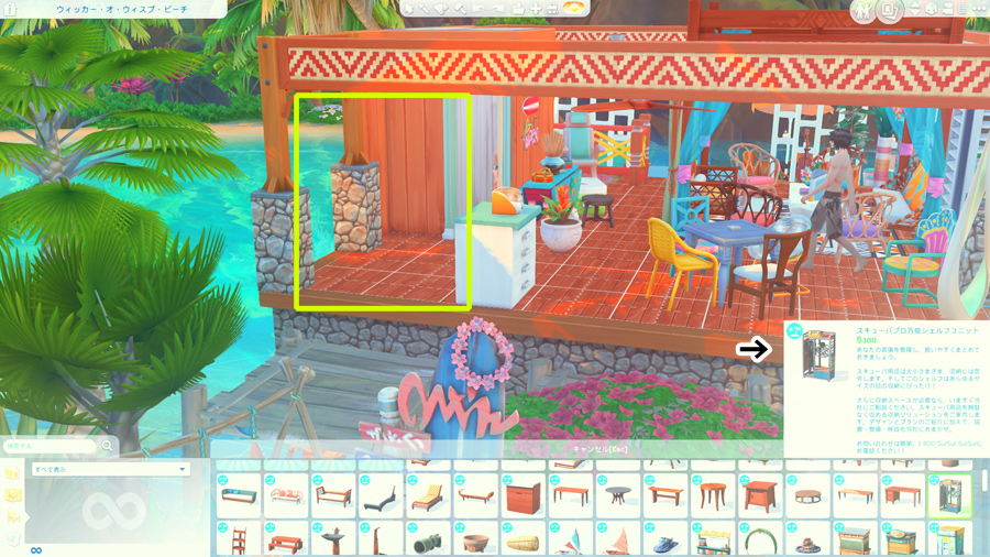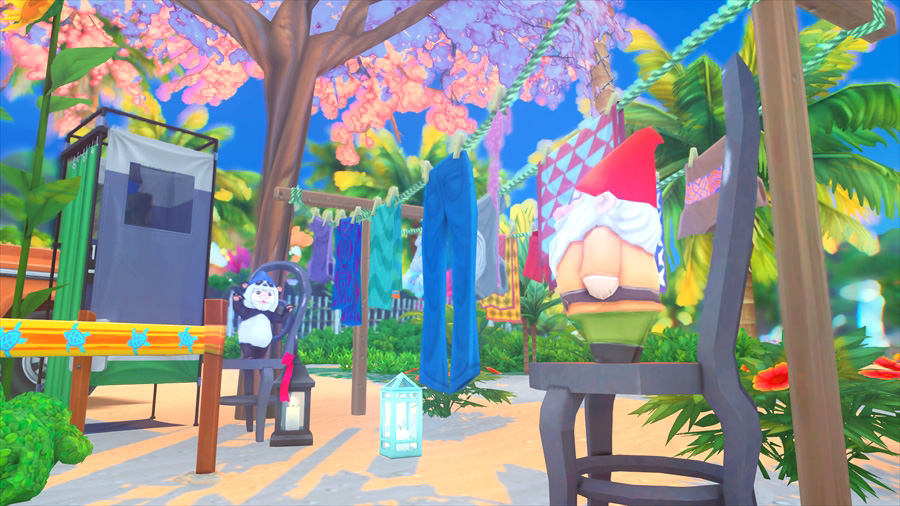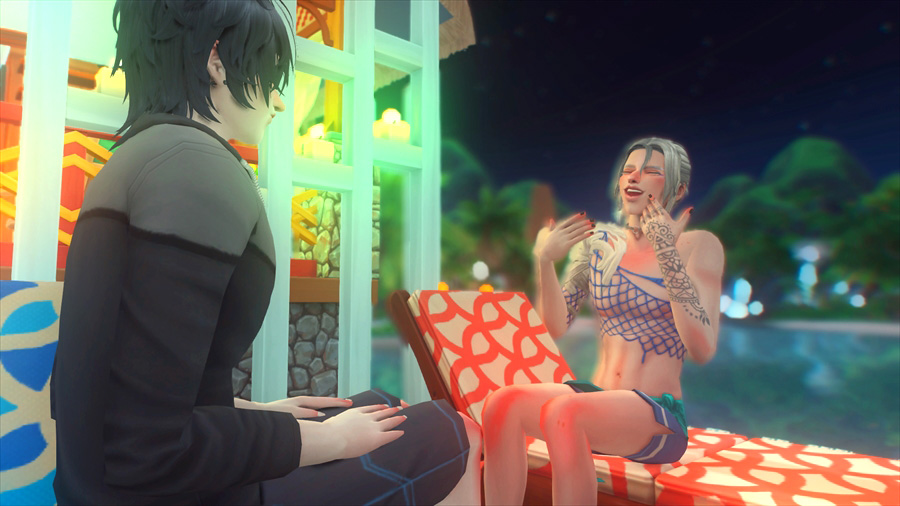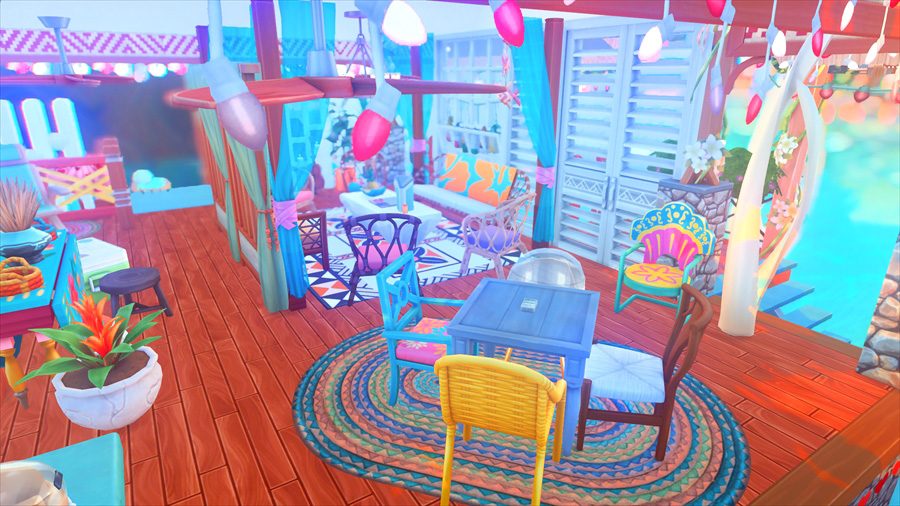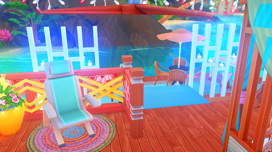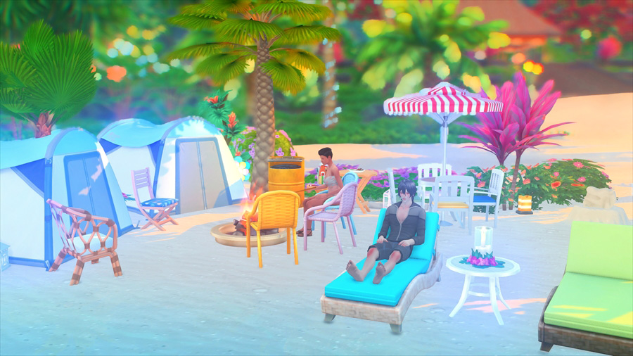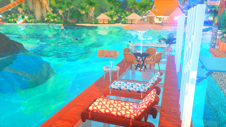 ラウンジチェアは横に一緒には座れないけどこうやって配置すると向かい合って喋れるんだなぁということがこのスクショを撮影するとき分かりました。