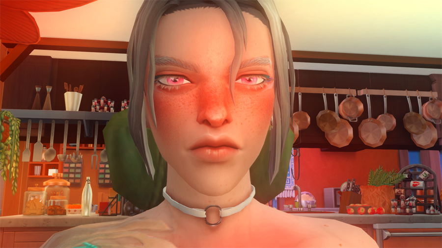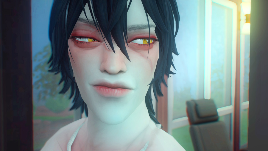 目つきの悪いシムでもまあまあ目の光が消えないかな…ぐらいの配置にハイライトが入ってます。