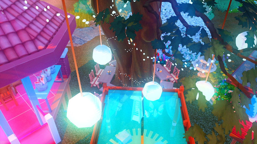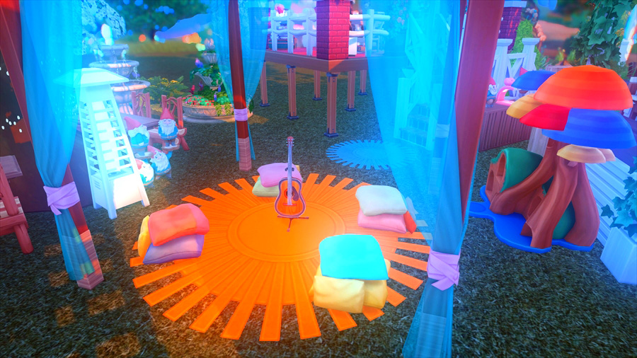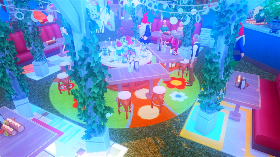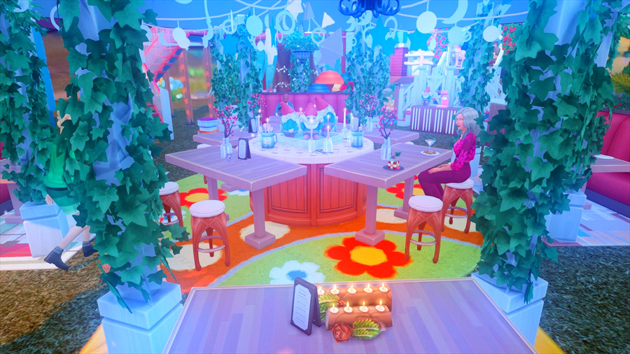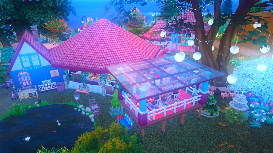 席に壁が存在しておらず雷の日とかはシムがあわあわして全然座ってくれないので、天気が悪い日の訪問はあまりおすすめしません。