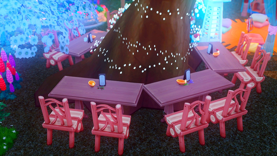 近所の畑で木を囲むテーブル席(休憩スペース)を見かけたからなのですが、ゲーム内では微妙に囲みきれてないという。