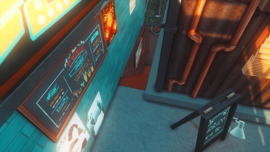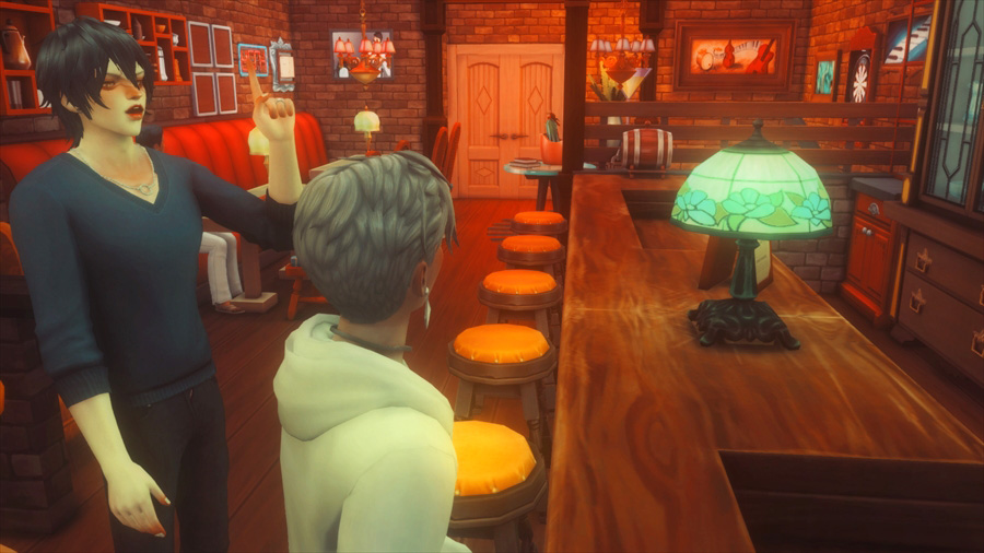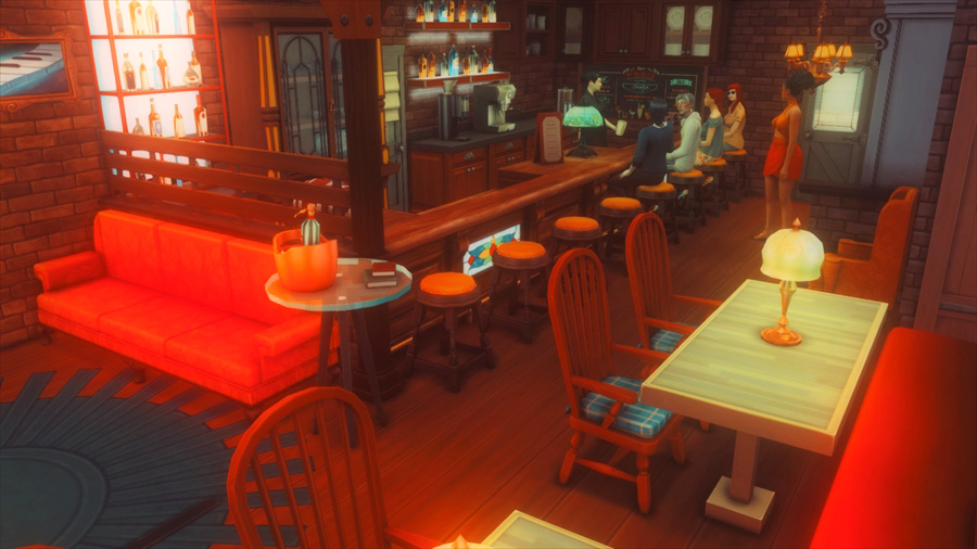 区画がバーでみんなこっちの方には全然来ないので2人きりでまったりしたいシム達にもいいのではないかと。