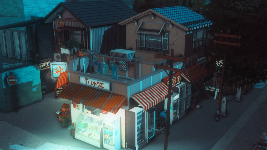 右の方の建物はタバコ屋をイメージしています。